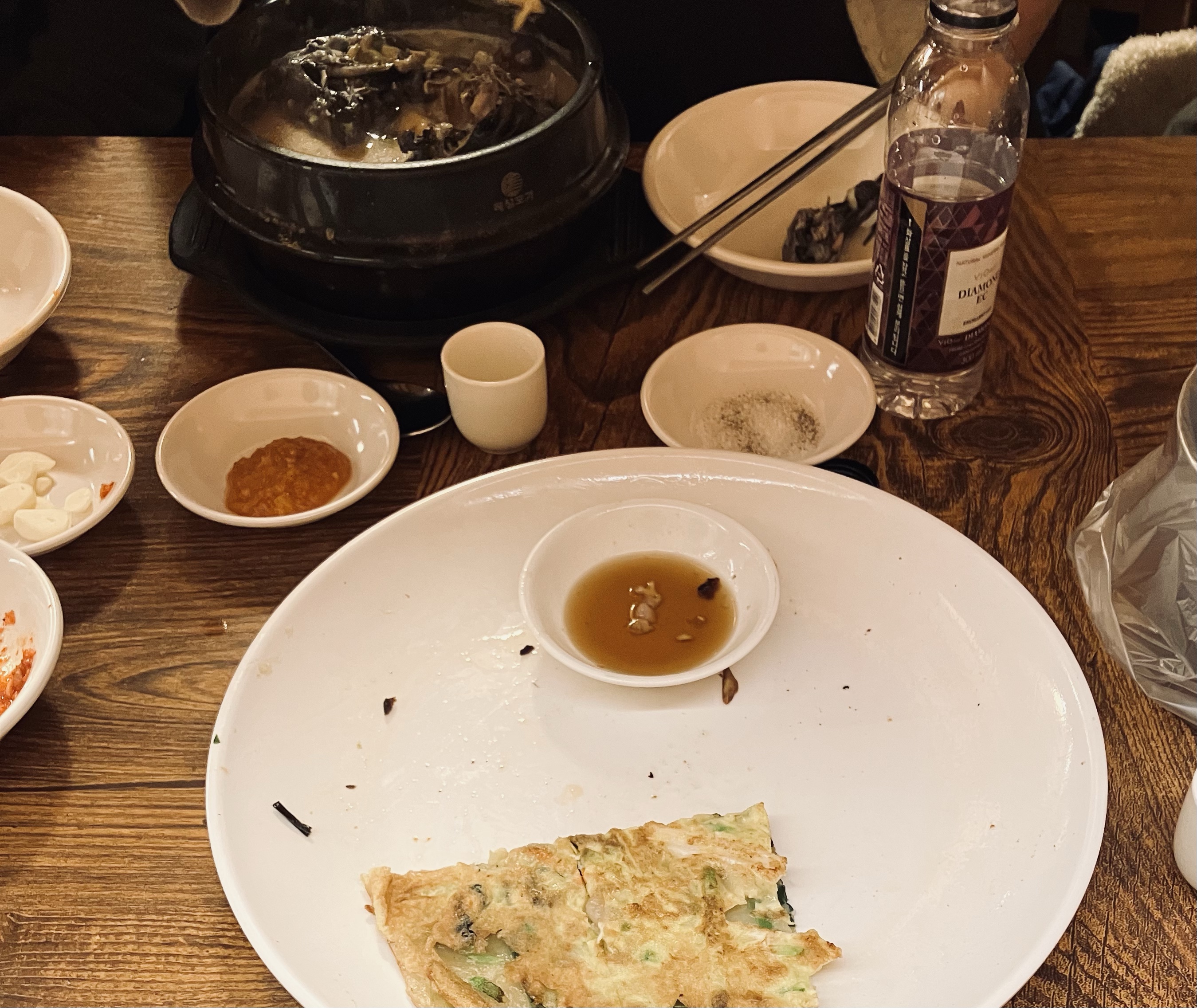 We did some shopping in the rush hour crush of Hongdae, then returned to our neighborhood for some ginseng chicken soup at a nearby restaurant. No scrap left behind!