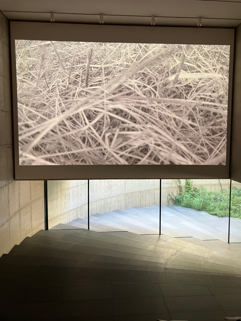 In the screening hall, I caught only half of a video by Kwon Hyewon, but it was incredible! The narration described a hypothetical project wherein a unnamed group orchestrated individuals performing dances in urban spaces. Videos of these dancers were then uploaded to Skynet, a drone database, with backdated metadata. This caused drones to identify these dancers as anomalous events in the present, and seek them out – but the drones were unable to find them, because they were from a fabricated present-past. In the end, the drones ultimately reenacted the dances themselves, as each failed, effectively “dying” in the dancer staged locations. The accompanying video was primarily in gray scale, with red subtitles and the sound wasn’t working so I watched it in the silent gallery. It depicted an almost documentary style view of the dancers preparing and performing, contrasted with jerky/frantic perspectives from multiple drones as they sought out the present-past dancers. What a strange, amazing story. I’m definitely going to find out more on her work, the concept and execution blew me away.